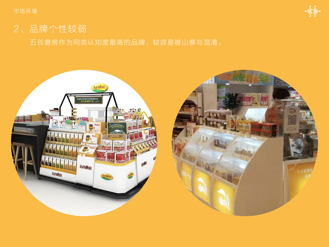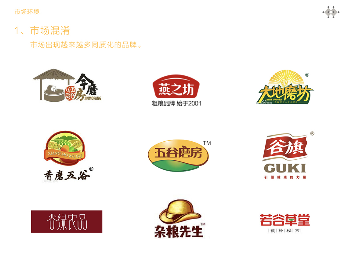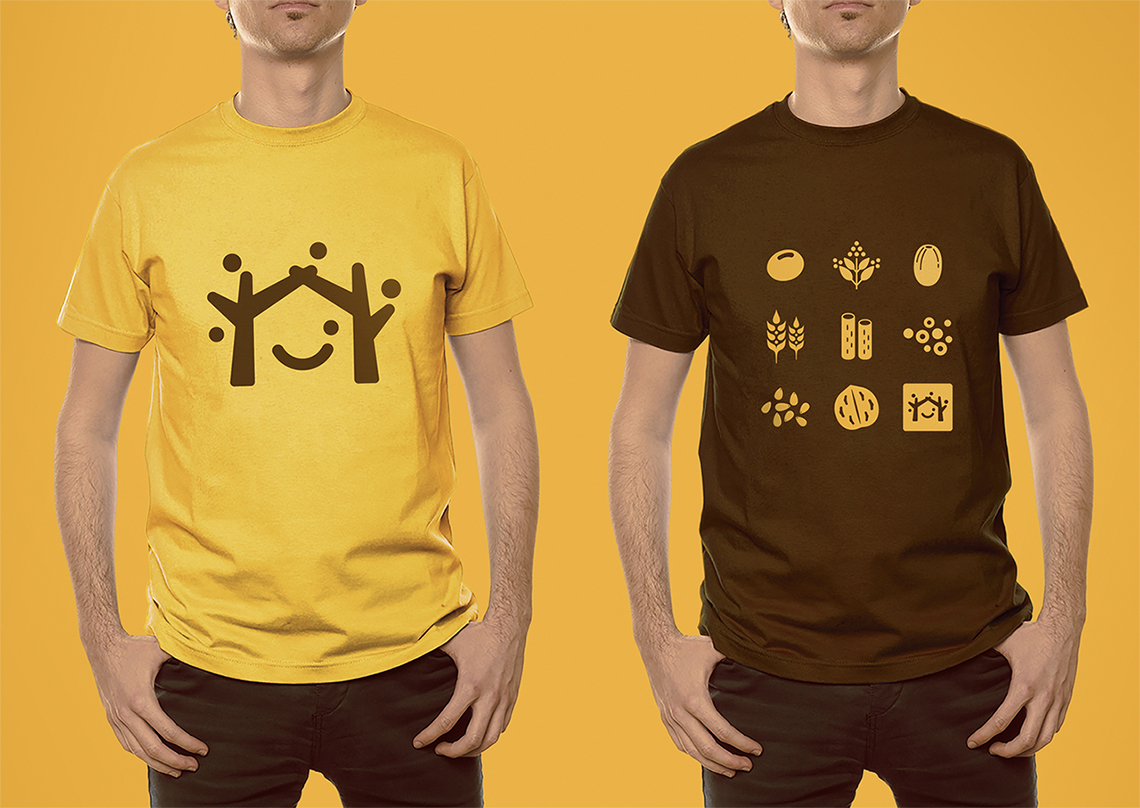 為解決五谷磨房原有品牌形象面臨的問題,全新的logo采用圖形標(biāo)加中文字的組合形式,Logo的整體設(shè)計簡單而富有親和力。品牌形象設(shè)計由五顆谷粒以及兩棵枝丫相連的樹圍繞著微笑的符號展開,如同父母牽手為家人搭起一個充滿歡樂的家,傳遞的是關(guān)愛與呵護(hù)的品牌愿景,同時也寓意著企業(yè)的不斷成長,以及“以人為本”的經(jīng)營理念。