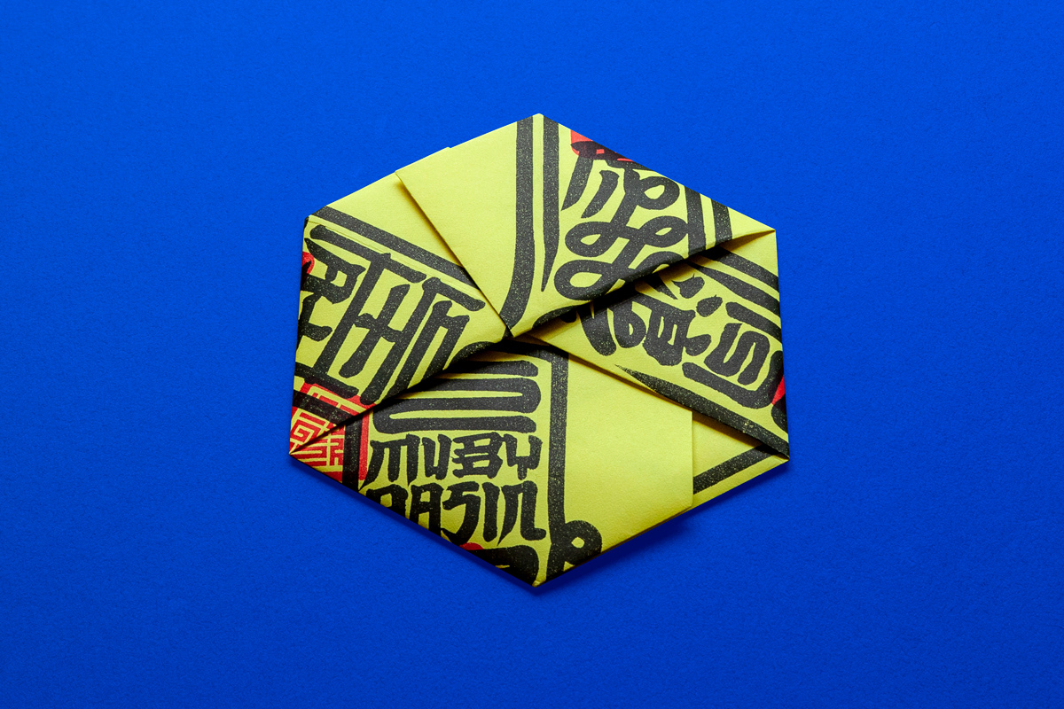 依據(jù)藝術(shù)家徐冰「新英文書法」,將英文Typography加上漢字構(gòu)成右側(cè)樂團(tuán)名 (The Muddy Basin Ramblers) 與左側(cè)專輯名 (Hold That Tiger),再造似字非字、似圖非圖的畫符美感,放大版的平安符由8道步驟摺為六角平安符並包裹光碟。