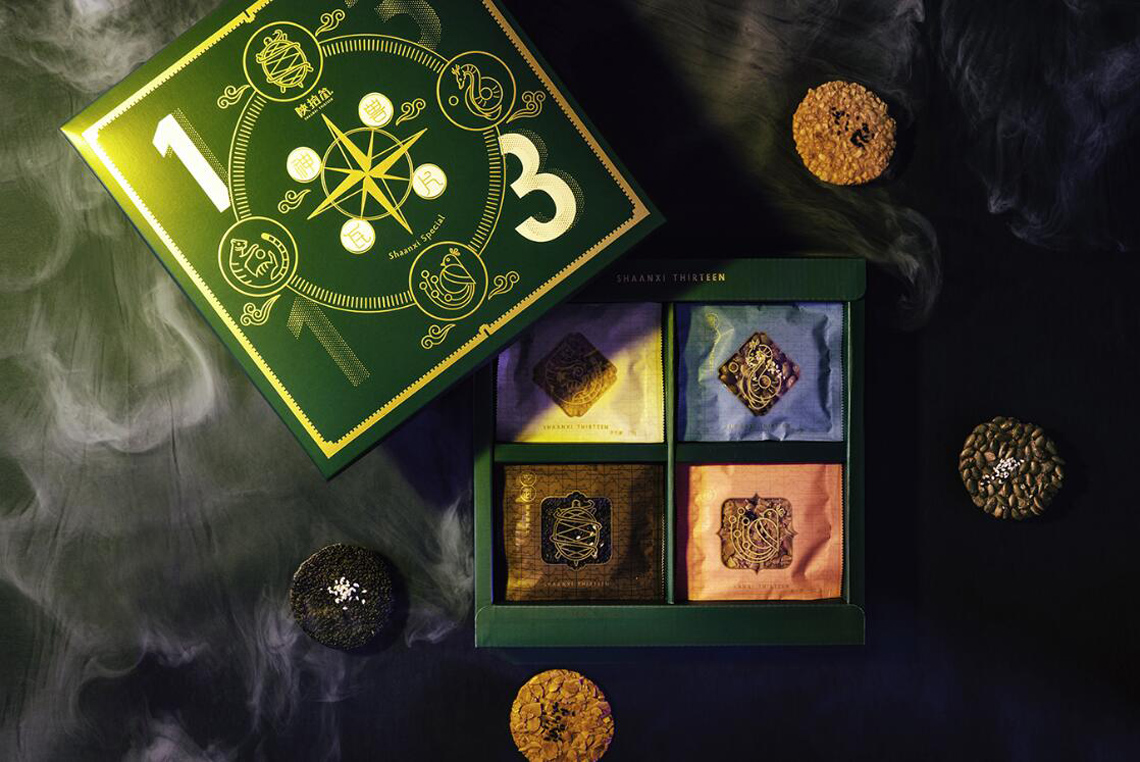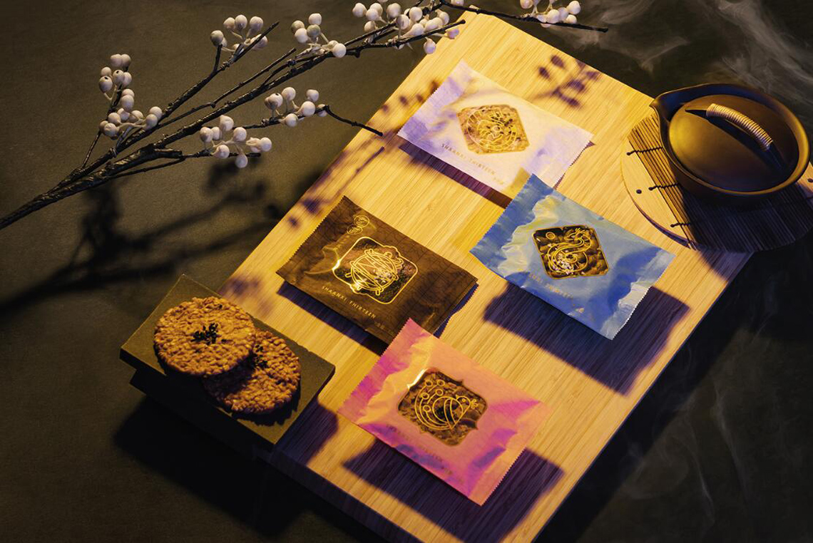 陜拾叄從西安的歷史出發(fā),以四神獸瓦當為概念製作出瓦片餅乾,研發(fā)四種口味,分別象徵了東青龍、西白虎、南朱雀及北玄武;