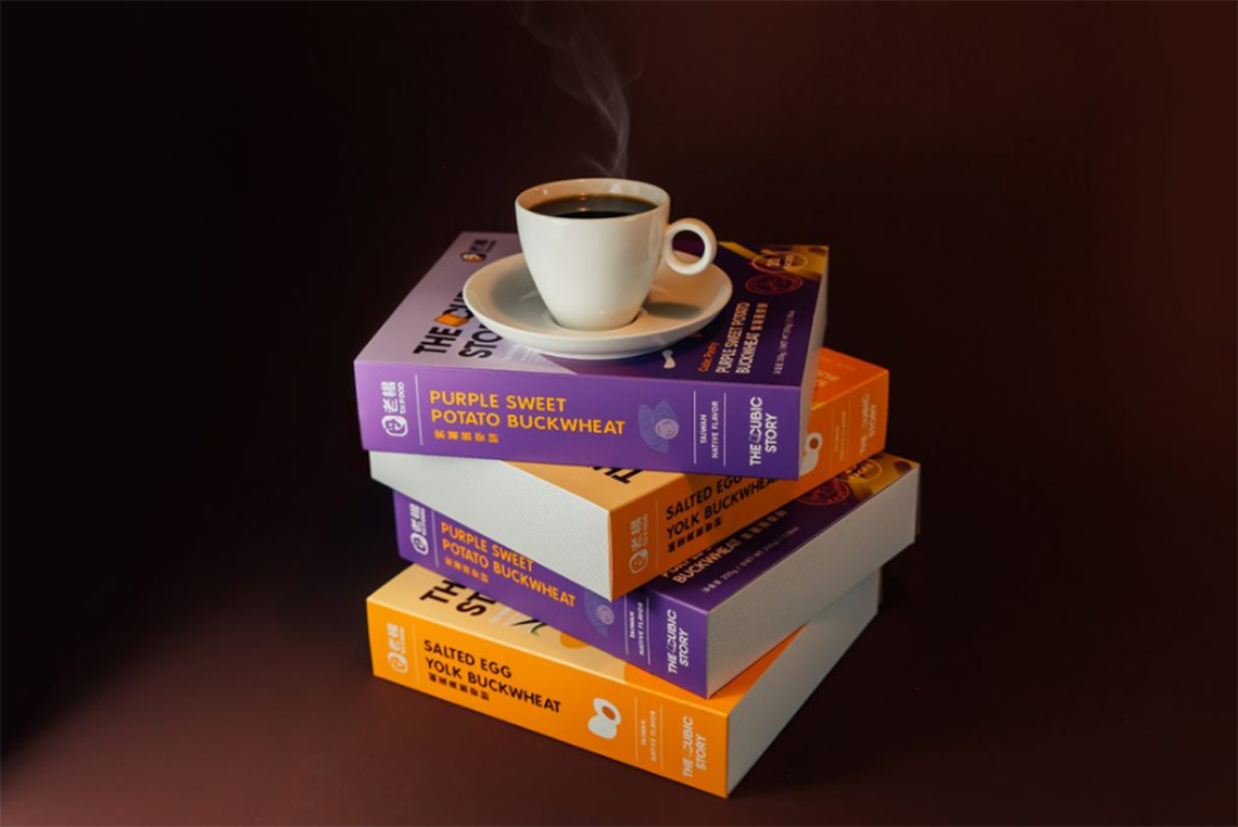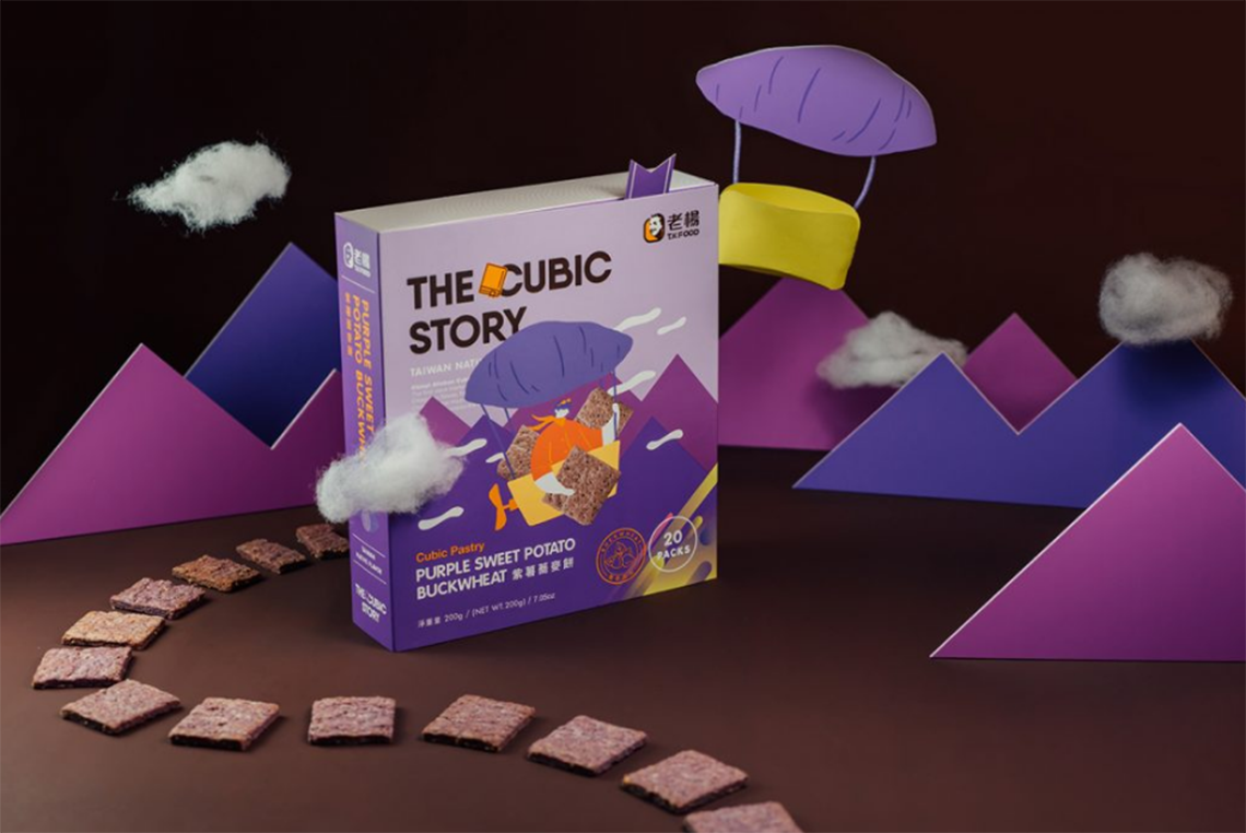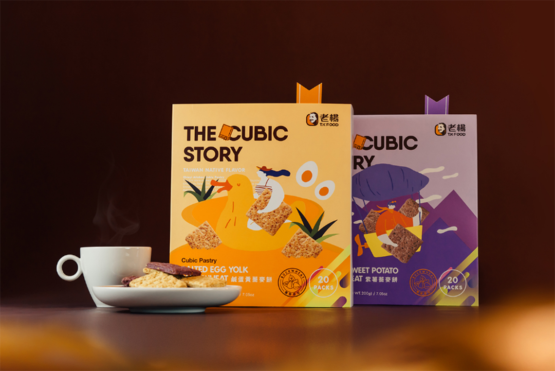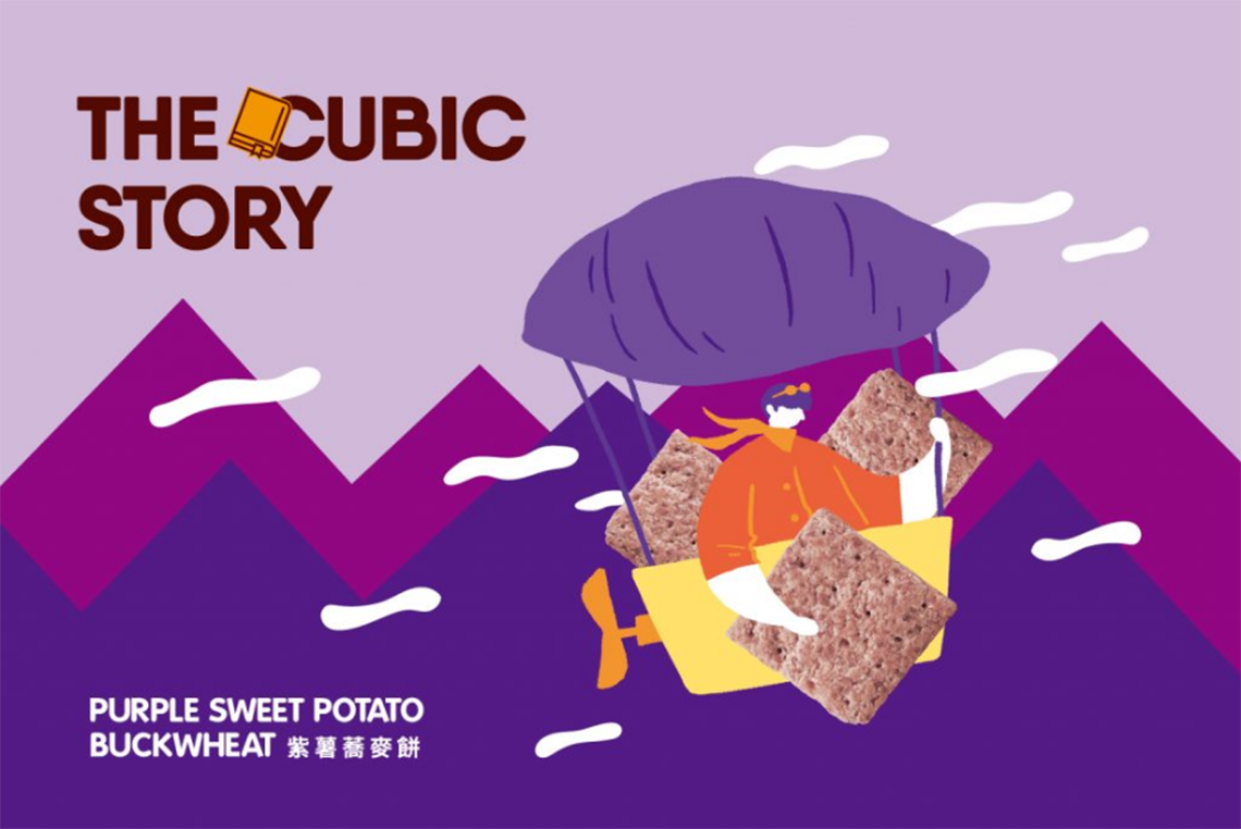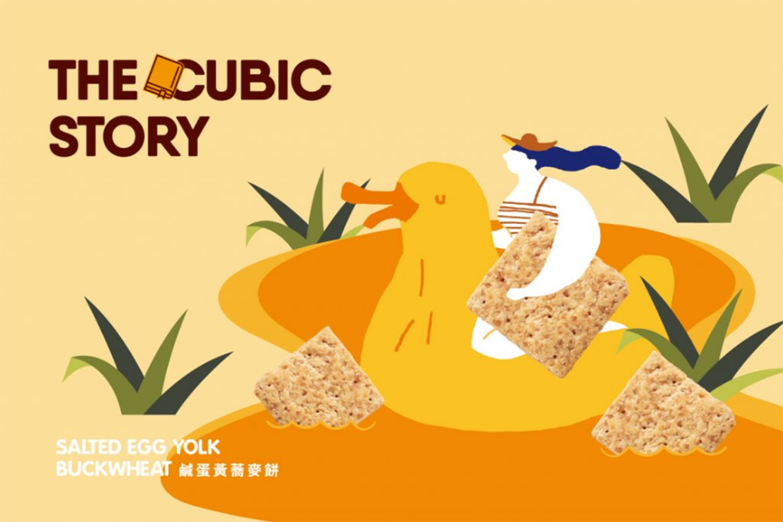 主題「THE CUBIC STORY」以童趣插畫風格展現(xiàn)了不同口味的幻想故事,選用臺灣傳統(tǒng)的口味-咸蛋黃搭配小鴨的故事及紫心地瓜熱氣球,