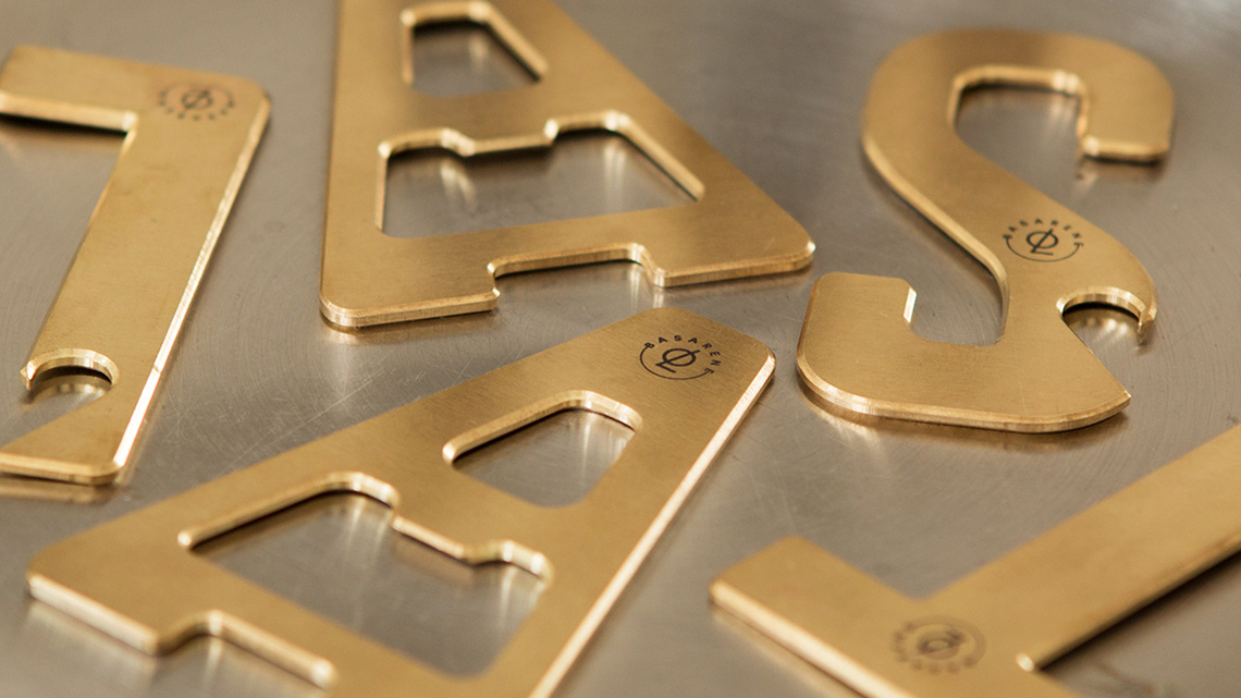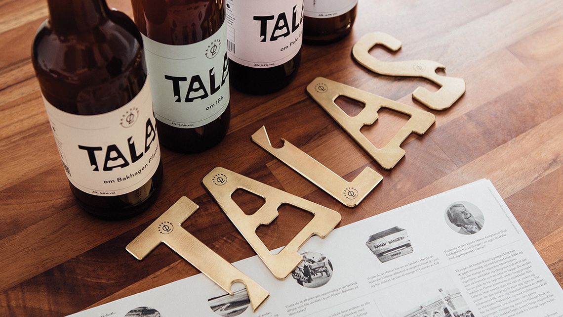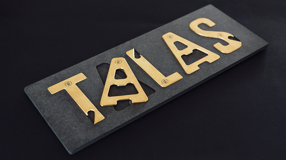 Talas是當(dāng)?shù)卦挕霸倭摹钡囊馑迹O(shè)計(jì)師抓住這個(gè)主題,將它延伸開來(lái),用印有當(dāng)?shù)卣乒实膱?bào)紙作為包裝,并且把組成品牌的字母,用黃銅經(jīng)手工打造成不同造型的開瓶器。