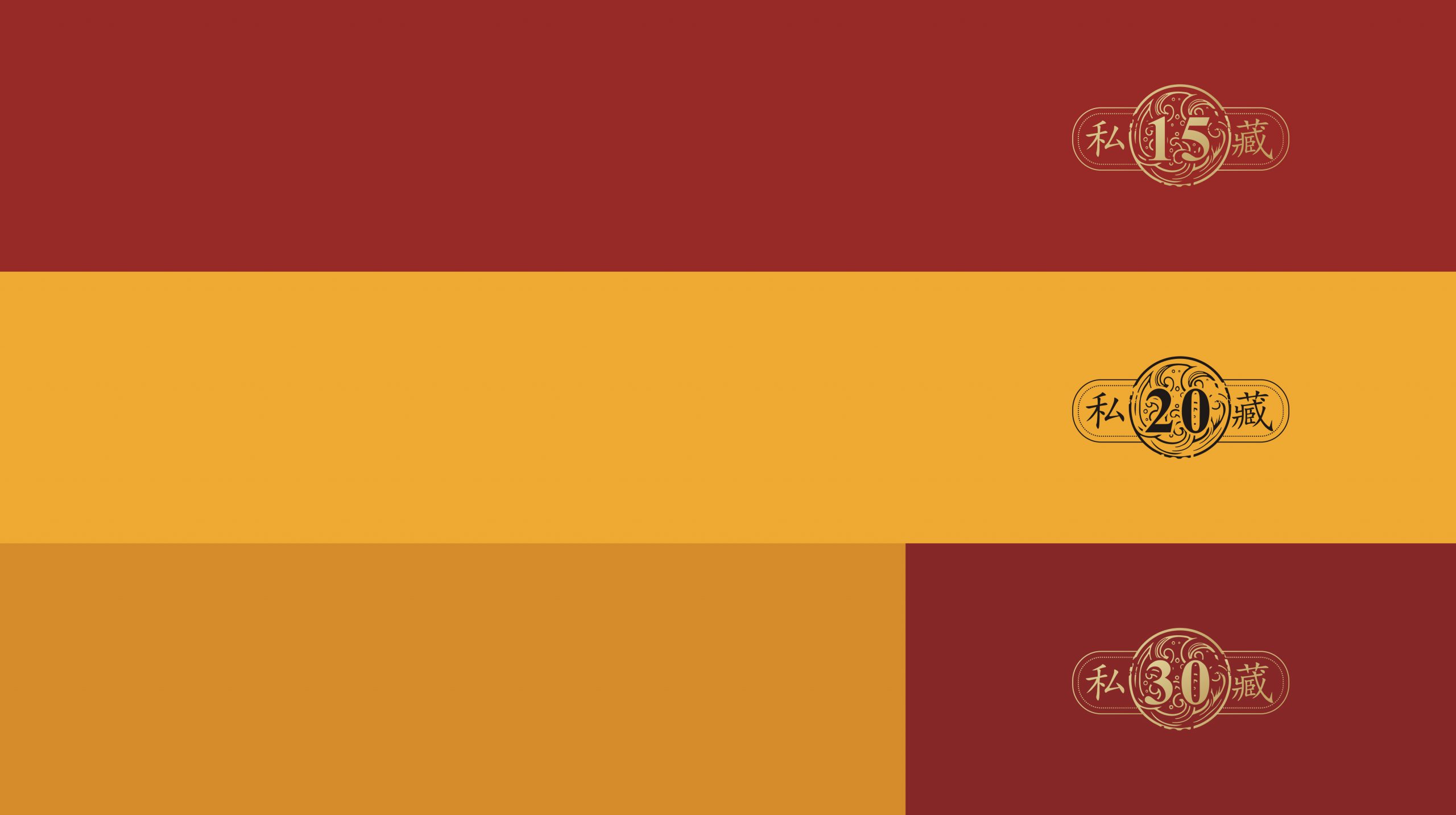 賴室老酒·私藏15、私藏20、私藏30分別采用傳統(tǒng)“絳紅色”、“帝王黃”、“ 絳紅&帝黃”作為主色,大氣沉穩(wěn)更具歷史底蘊(yùn)。核心思維就是“從群眾中來(lái)、到群眾中去”,滿足顧客習(xí)慣:1、顧客一眼就喜歡,即這個(gè)色彩,是這個(gè)品類在其主要消費(fèi)場(chǎng)景下,是最具有積極品類意義與文化意義的色彩。2、顧客一張嘴就能傳播,買那個(gè)紅的、黃的、藍(lán)的、綠的……