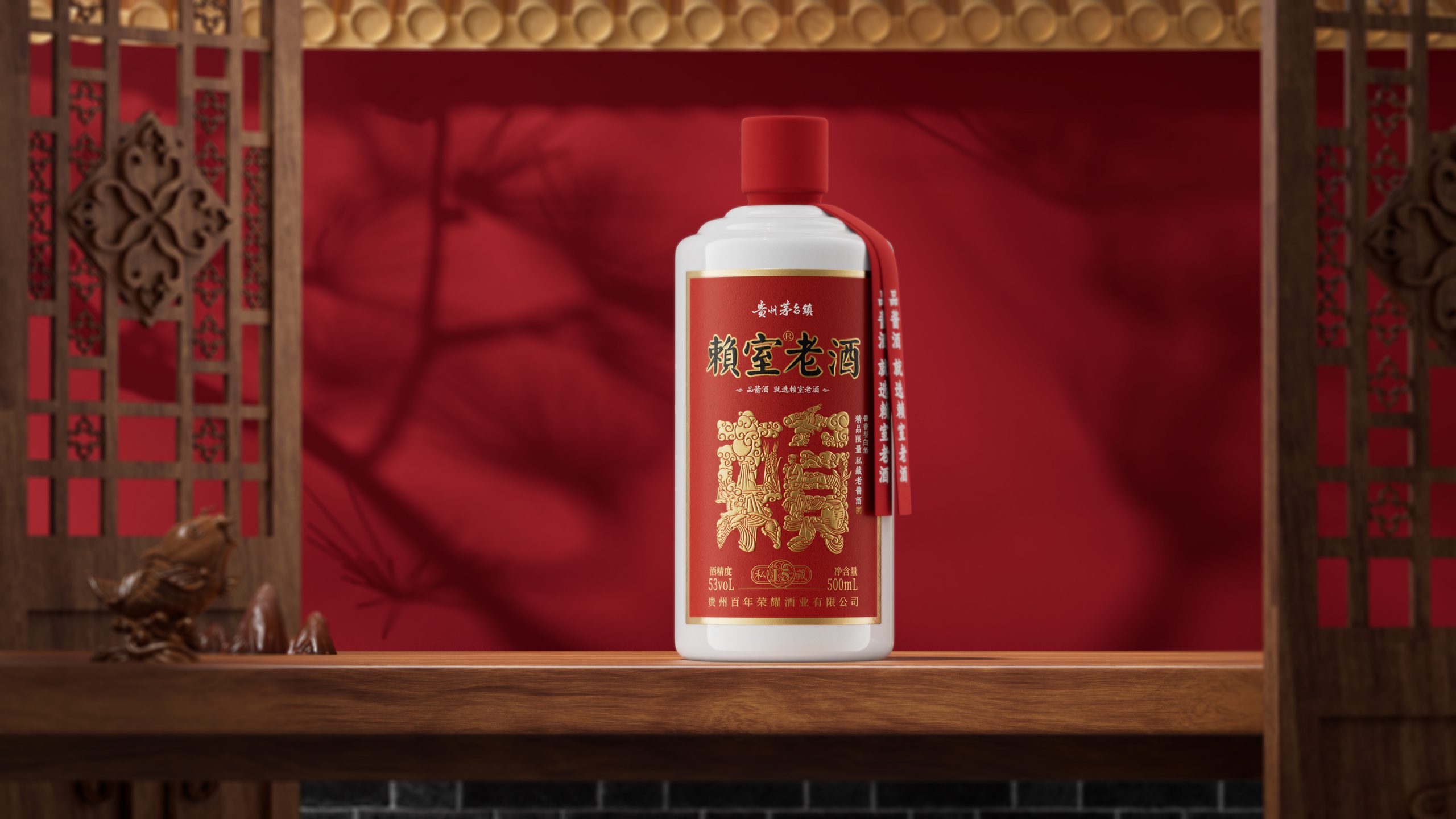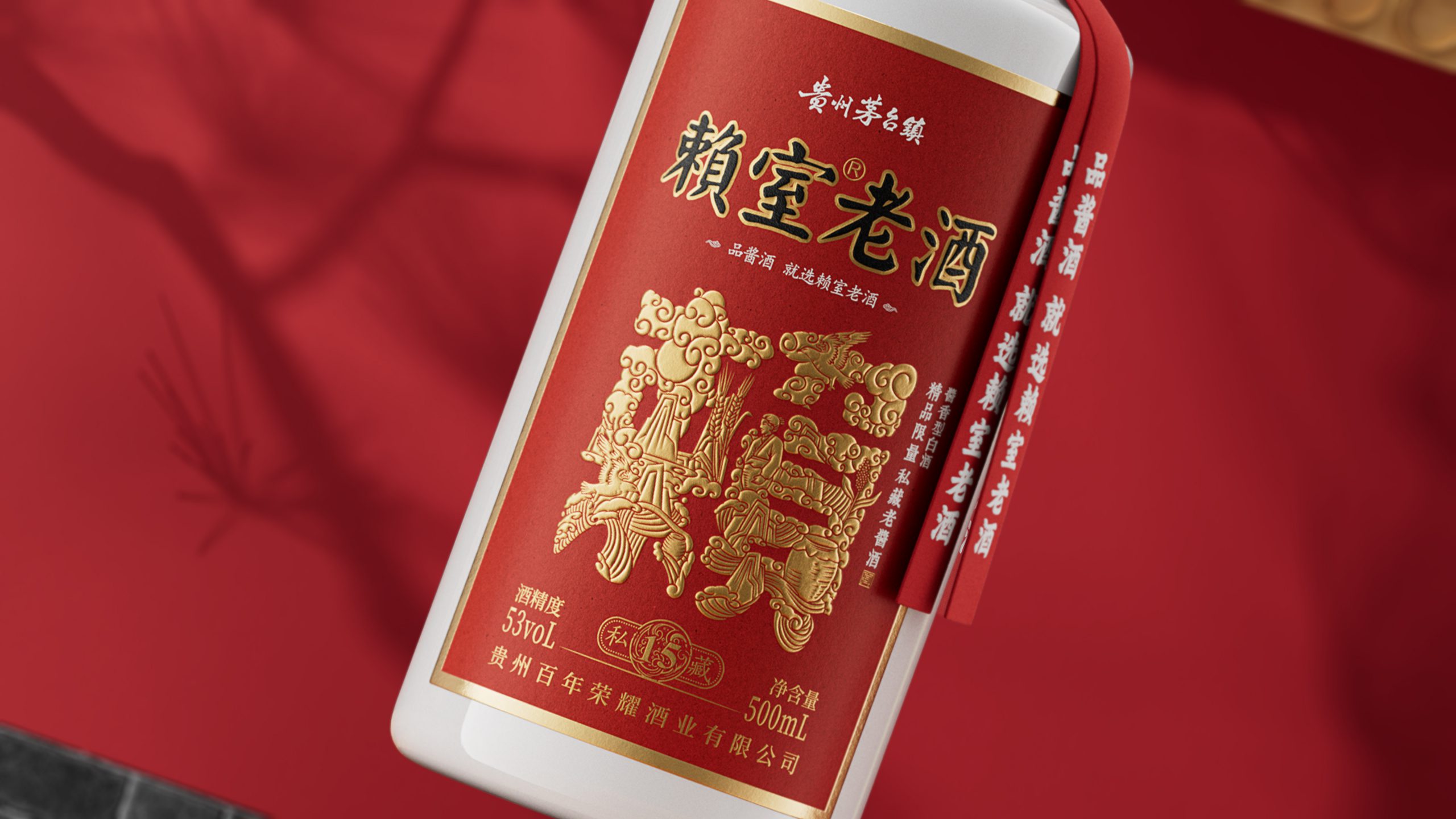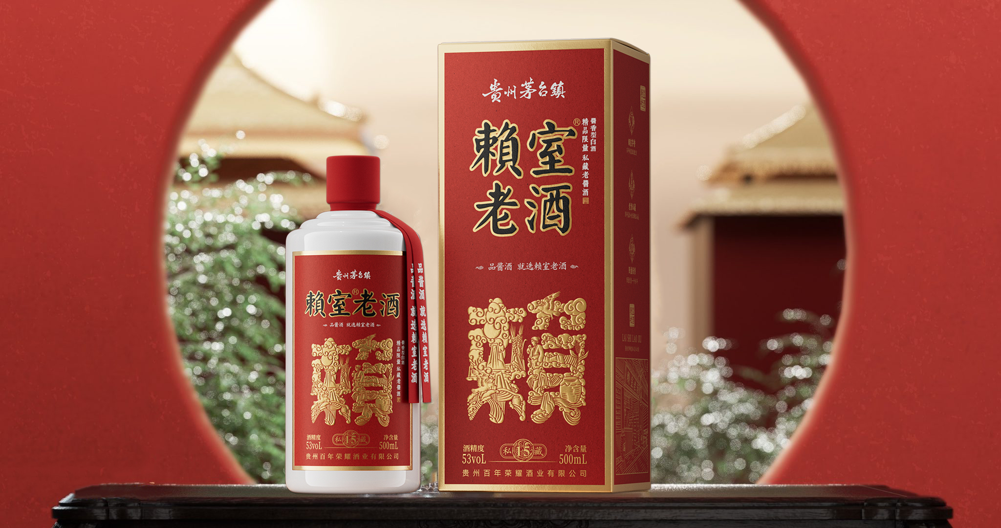 賴室老酒進(jìn)行組合,形成一個(gè)印章,代表了賴室老酒不變承諾。